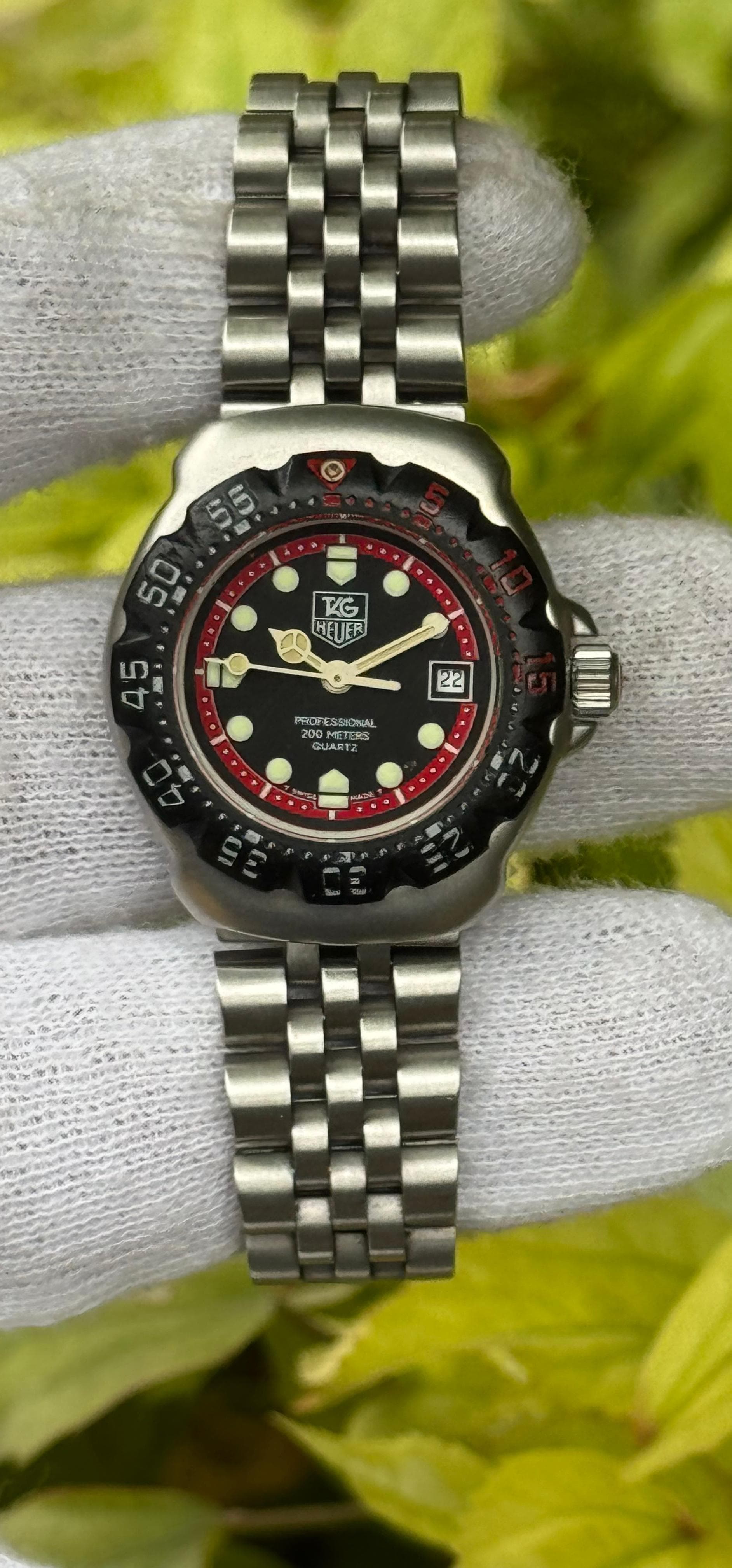 Version full acier de l'iconique Formula 1, avec cadran noir et rehaut rouge. Le bracelet en acier massif avec boucle deployante offre un confort superieur a la version cuir. La lunette tournante noire crantee et le cadran Professional 200m completent le look sportif. Un excellent point d'entree dans l'univers TAG Heuer vintage des annees 90.